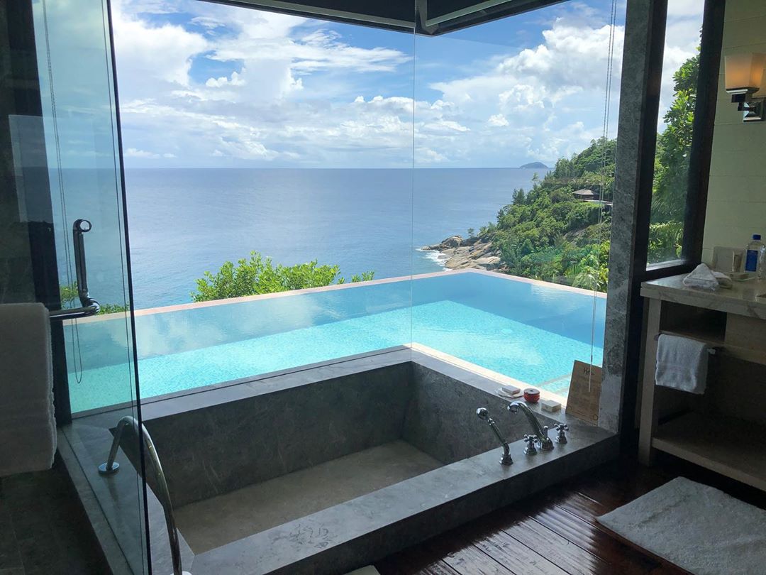 Turkish Airlines leaves you right in Seychelle. Mahe which is where our adventure began in the Four Seasons Mahe which is a twenty-five-minute journey from the airport which is ideal especially when you have just come off a fifteen-hour flight. When picking a hotel its always important to look at the location because you don’t want to be miles away from the beach and restaurants but not so close that there is a lot of noise pollution. In saying all of that the Four Seasons Mahe is literal perfection. It’s in walking distance to the beach. Oh did I mention that the beach is white sand which connects you to the crystal clear blue Indian ocean? We didn’t really make it to there that much as we were very content with our own private pool… Yes, I said it OUR OWN PRIVATE POOL. Even though I wasn’t surprised by the pool as we had spent a portion of our honeymoon there back in 2015 it still felt magical every day waking up and looking out to an untouched pool. Well, untouched until Richard jumps in, in an attempt to soak me which may I add worked every time! You’d think I’d be used to his attics after being married to him for the last four years.